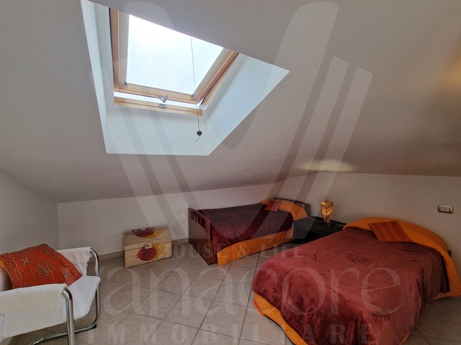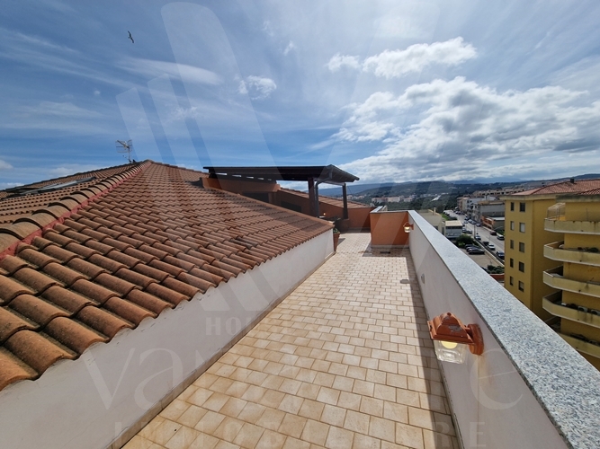 La casa dispone di angolo cottura separato e accessoriato, tre camere da letto (una matrimoniale con armadiatura a muro e due con accesso alla terrazza), bagno finestrato con doccia, zona lavanderia e comodo balconcino a tasca.
