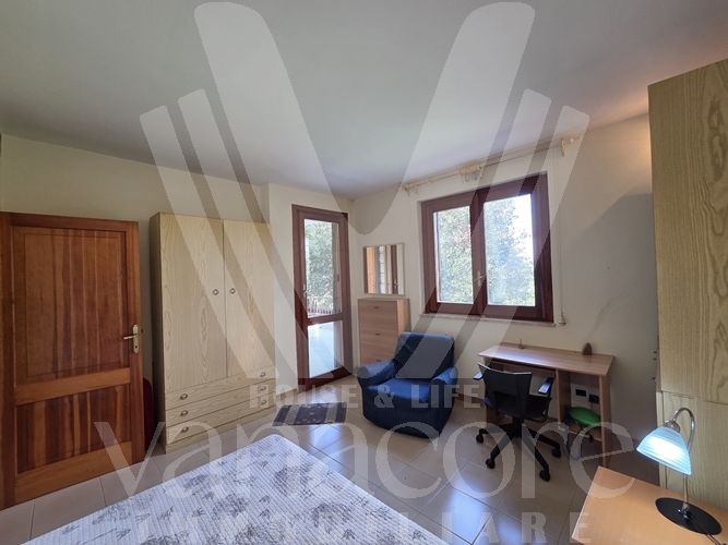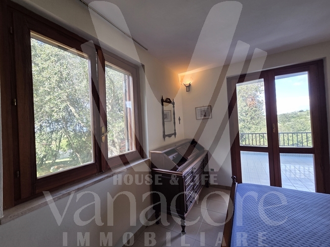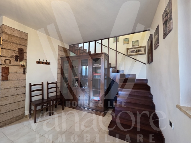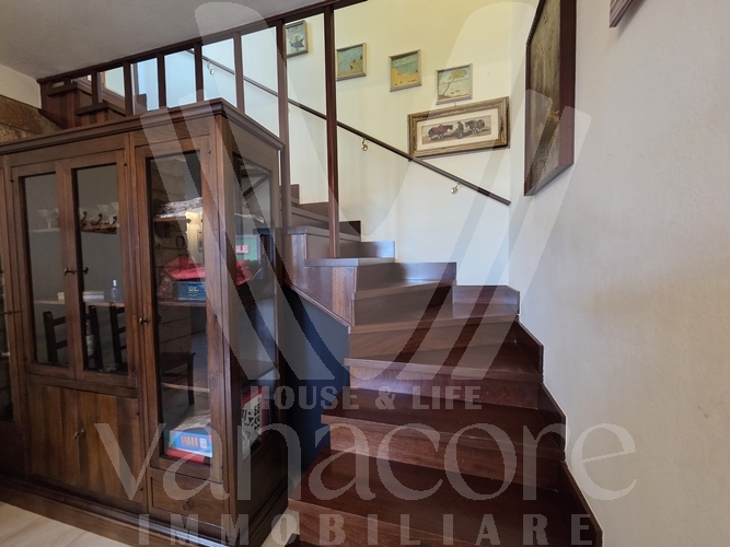 Una scala interna in legno collega la zona giorno al piano superiore, dove si sviluppa la zona notte composta da tre camere da letto, di cui due matrimoniali con accesso diretto a una terrazza di generose dimensioni che regala una splendida vista sul paesaggio naturale circostante. Sullo stesso livello si trova inoltre un grande bagno con vasca. Dal disimpegno, una botola con scala retraibile permette l’accesso alla mansarda, perfetta come ripostiglio o ambiente di sgombero.