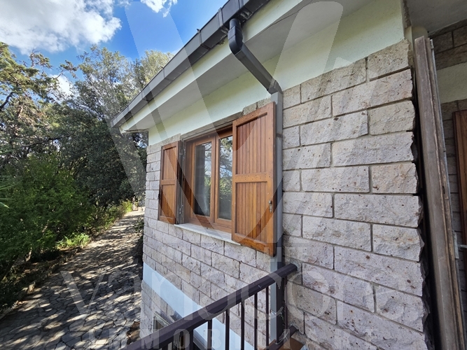 L’esterno dell’abitazione è rivestito con pietra di trachite e le intercapedini con pannelli in sughero che donano maggiore isolamento.