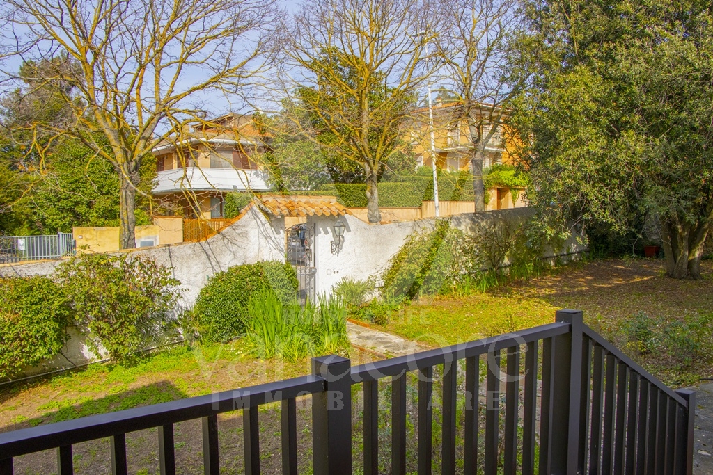 Un elegante vialetto conduce all’ingresso principale, sopraelevato rispetto al livello del giardino, accessibile tramite una piccola scalinata che introduce in un ampio atrio d’ingresso. Da qui si accede agli ambienti principali, tutti caratterizzati da finiture ricercate e materiali di pregio, come il pavimento in ceramica realizzato a mano che impreziosisce la zona di ingresso e la sala da pranzo.